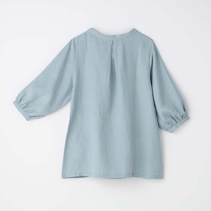 袖口にギャザーをよせて絞り込んでいる6分丈なので、家事や作業時に邪魔にならず、女性らしい優しいシルエットになってます。