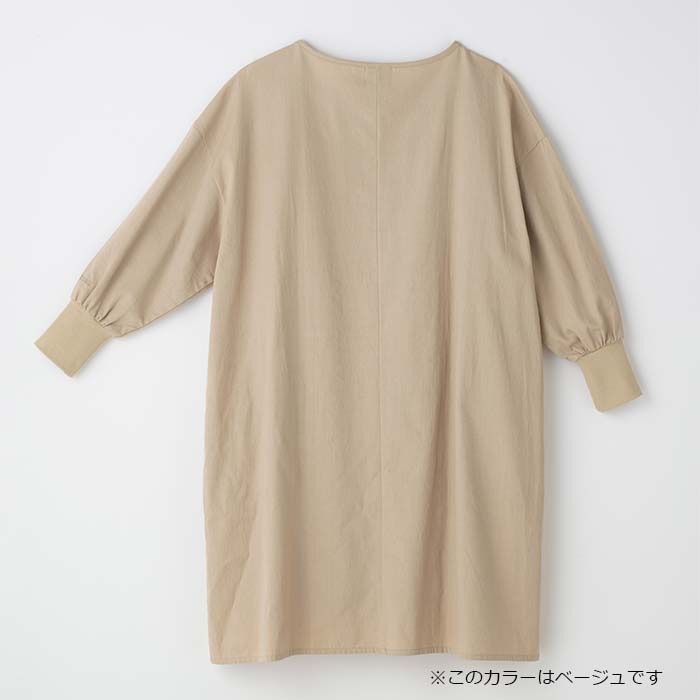 袖口にフィット感の高い編み上げリブ仕様とゆったりとした袖のパターンで家事や作業の時も邪魔にならず、かつ女性らしい優しいシルエットに仕上がっています。