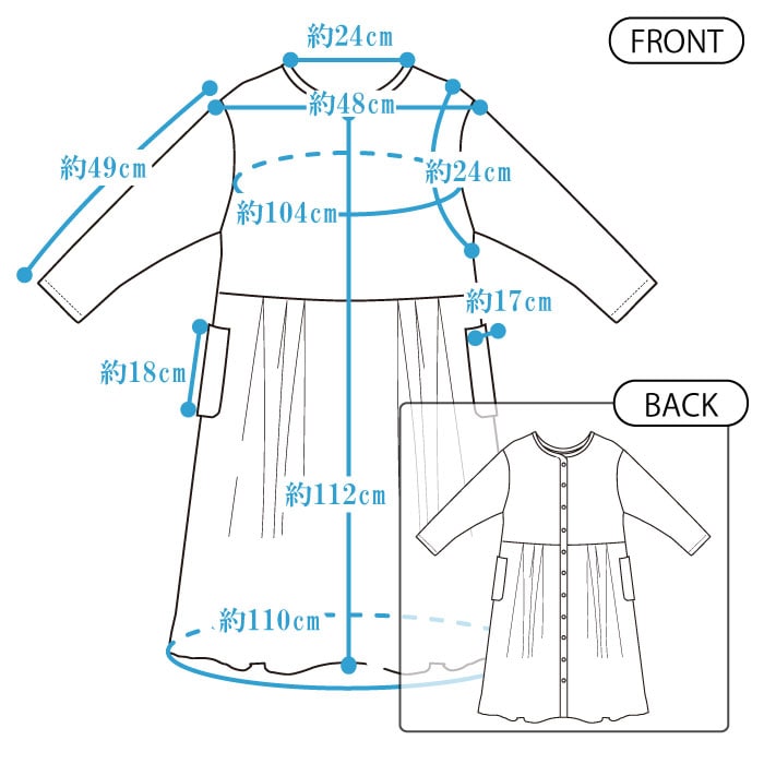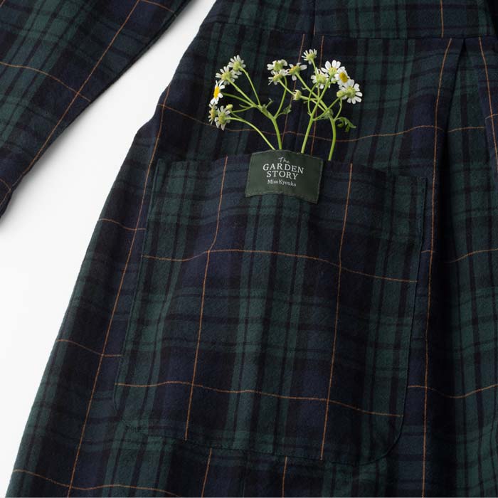 肌に優しい綿100%の素材を使用し、背中上から下までボタン開け仕様でポケットを2つ配し、シンプルながらもどんなスタイルにも合わせやすいデザインです。