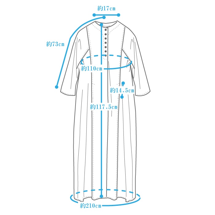 | サイズ | M-L(フリーサイズ) 着丈(BC):117.5cm 胸囲:110㎝ 裄丈:73㎝ 天巾:17㎝ 裾巾:105㎝ 【ポケット】 手入れ口約14.5cm 深さ 最大約20cm |