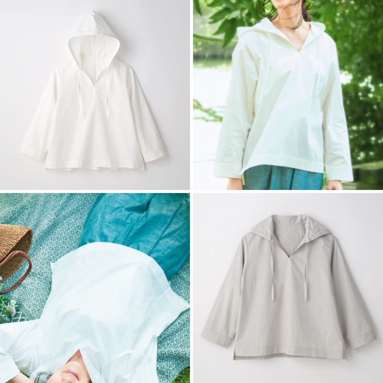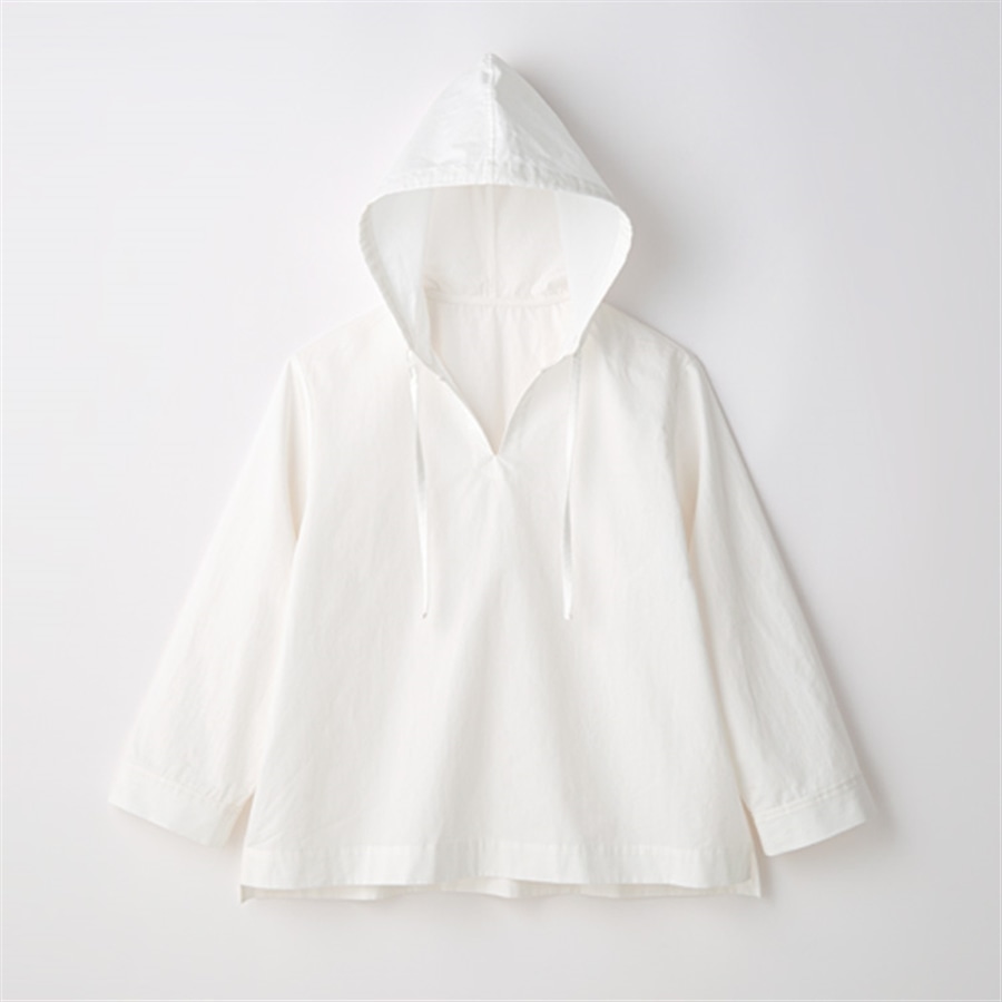 1枚でさらっとでも重ね着でも存在感のある、使い勝手の良いゆったりフーディブラウス