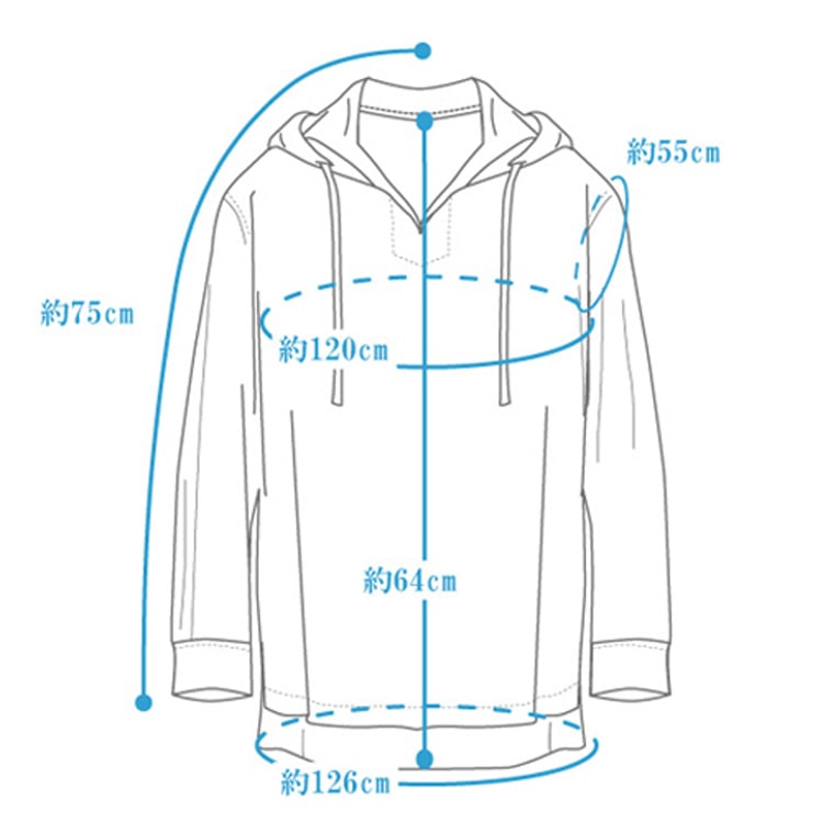 | サイズ | M-L 着丈(BC):64cm バスト:120cm 肩幅46cm 袖丈52cm 袖口31cm 裄丈75cm 裾幅63cm |