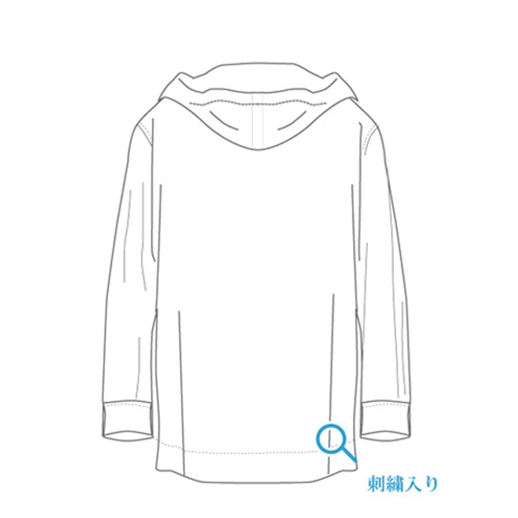 ロゴ刺繍はあえて、さりげなく後身頃の右裾に。