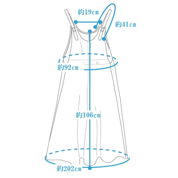 | サイズ | M-L(フリーサイズ) 着丈:約106cm 身幅:約92cm 裾幅:約101cm ベルト(肩ひも):約40.5cm |