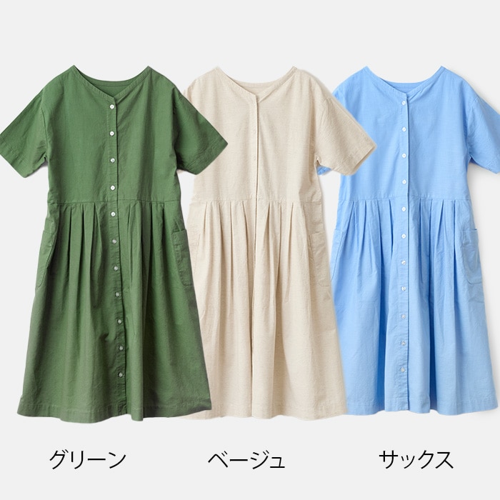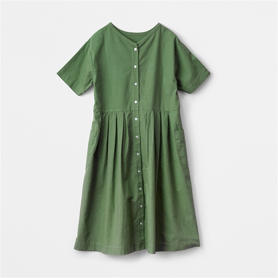 タックがたくさん入ったボリューム感がナチュラル可愛いらしいシルエット。1枚で着ても存在感のあるワンピースに仕上げました。全開にして羽織りにもなる、使い勝手の良い一着です。