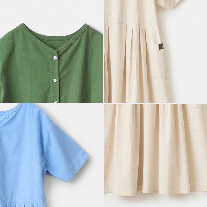 綿麻素材で肌触りが良く、発色もきれいで、爽やかな風合いと絶妙なシワ感が魅力。