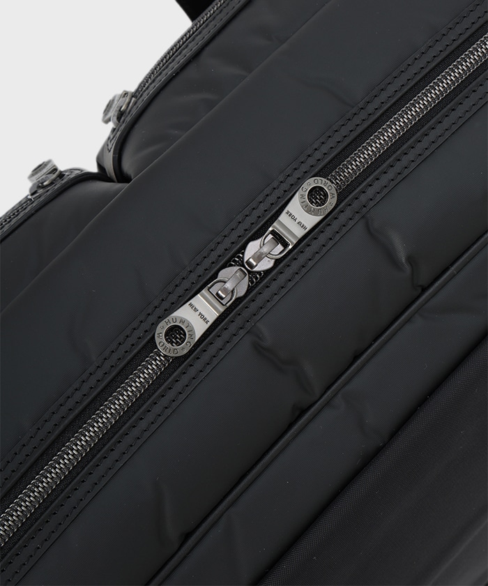 ・軽量のナイロンコイルファスナーは軽さと開閉のしやすさを担いつつ、ストッパー部分に金具を装着することでラグジュアリー感を向上。