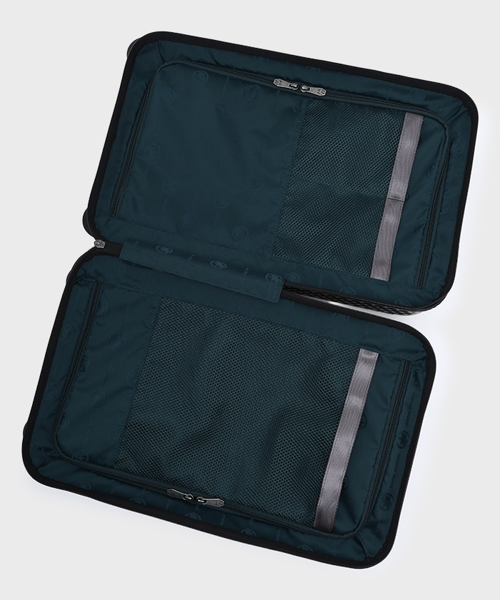 ・内装はポケット付きのファスナー開閉仕切りタイプで荷崩れせず収納が可能。