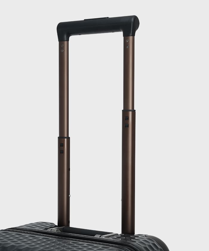 本体外部:ハンドル(多段階長さ調節)、上部ハンドル、サイドハンドル(革製)