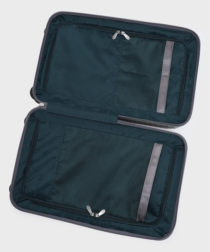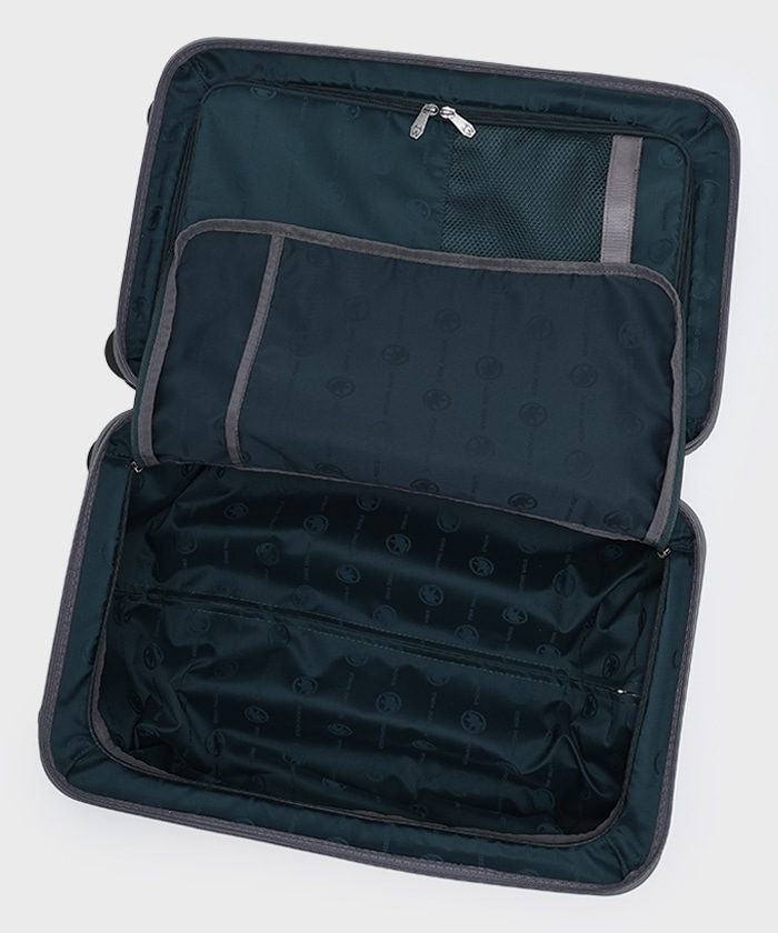 ・内装はポケット付きのファスナー開閉仕切りタイプで荷崩れせず収納が可能。