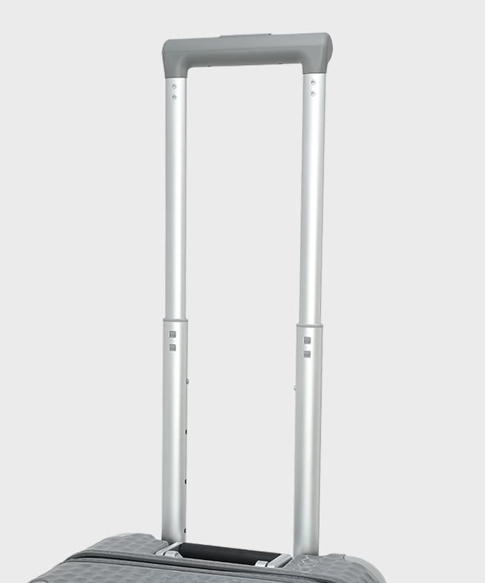 本体外部:ハンドル(多段階長さ調節)、上部ハンドル、サイドハンドル(革製)