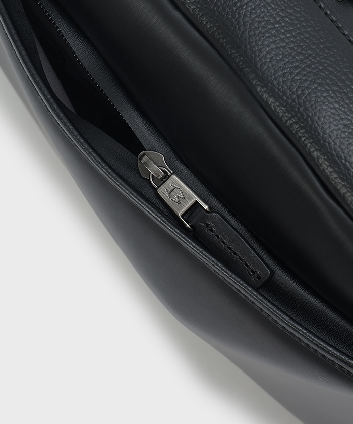 ・上から開閉できセキュリティ面にも優れた背面のファスナーポケット付き。