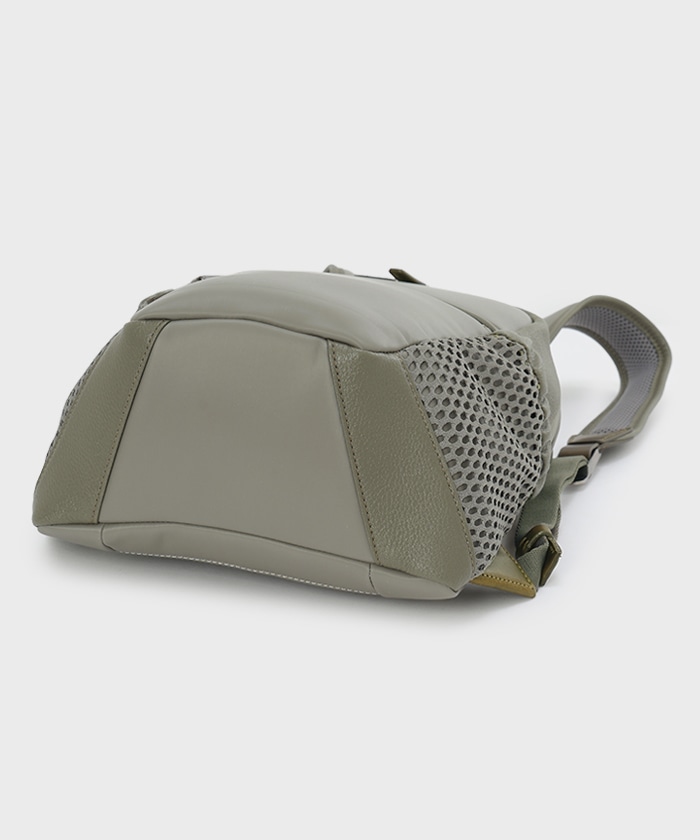 本体外部:ファスナーポケット1、サイドメッシュポケット2