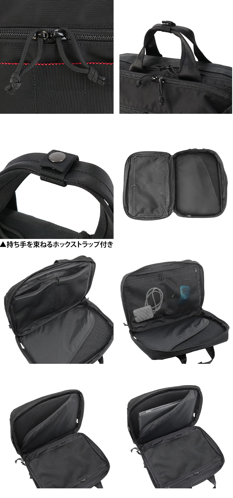 ・持ち手を束ねるホックストラップ付き