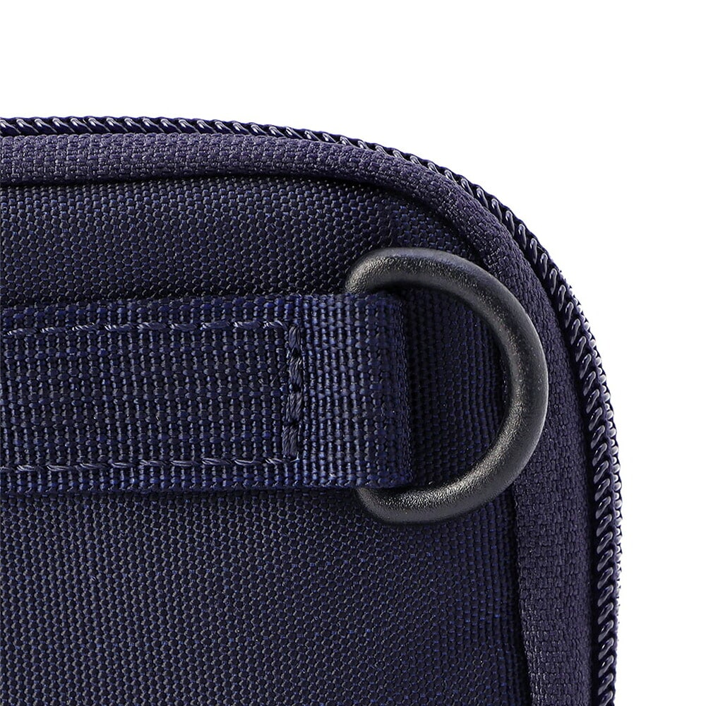 ラウンドファスナー仕様で大きく開き、折り込みマチによって中身を見渡しやすい設計ながら、厚みを抑えたスマートなフォルムをキープ。
