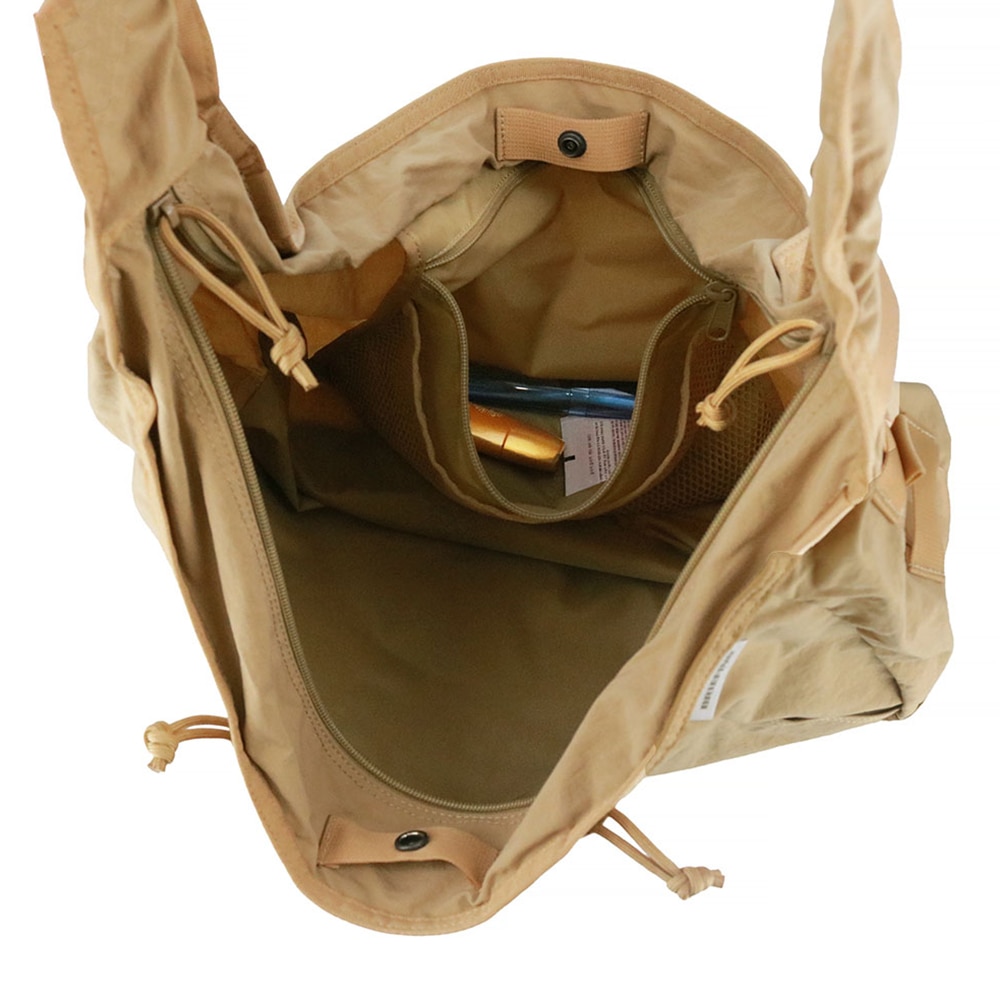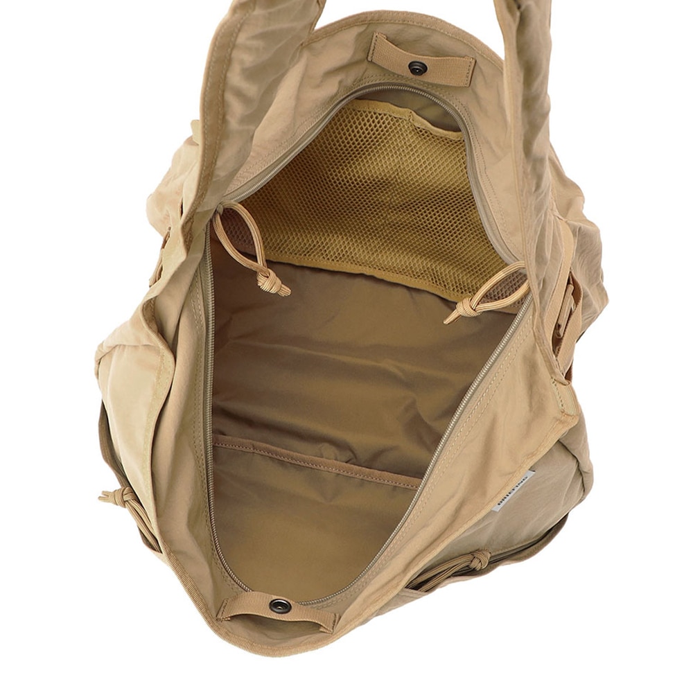 メイン素材には、綿のような柔らかさとナチュラルな風合いをもつナイロン生地を使用。