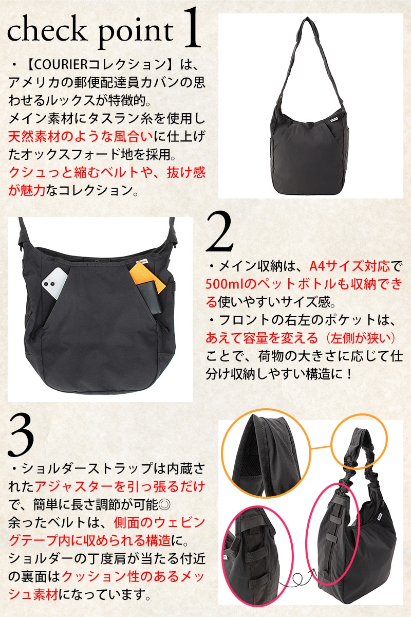 ・ショルダーベルトはアジャスター付きで長さ調節可能