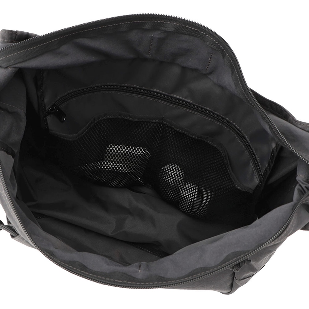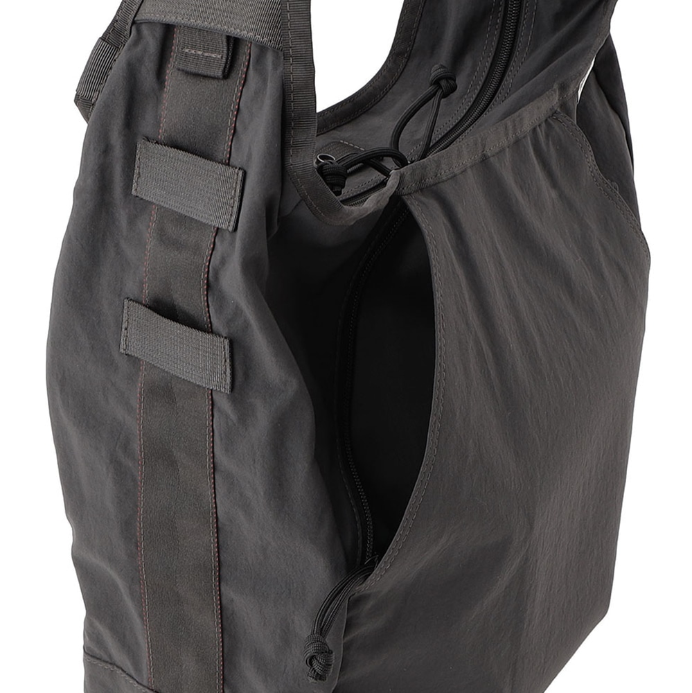 ・余ったショルダーベルトは、側面のウェビングテープ内にすっきり収められるので邪魔になりません。