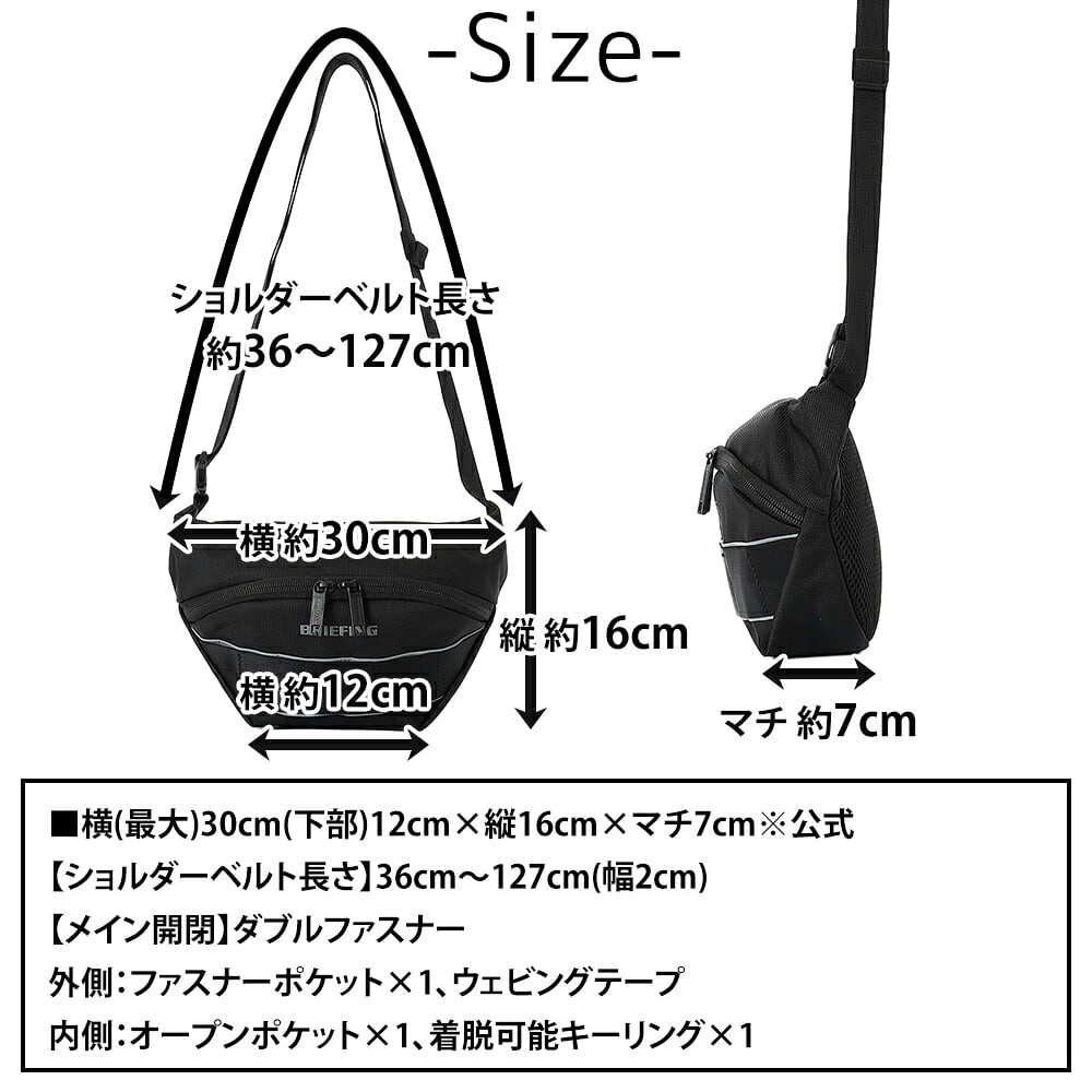 | サイズ(約) ※当店実寸値 | 公式サイズ 横(最大)30cm(下部)12cm×縦16cm×マチ7cm 【ショルダーベルト長さ】36cm~127cm(幅2cm) | ||