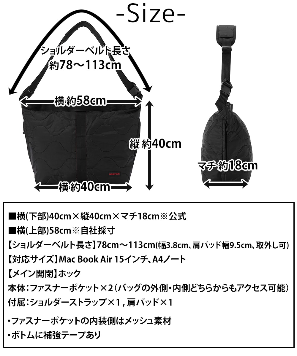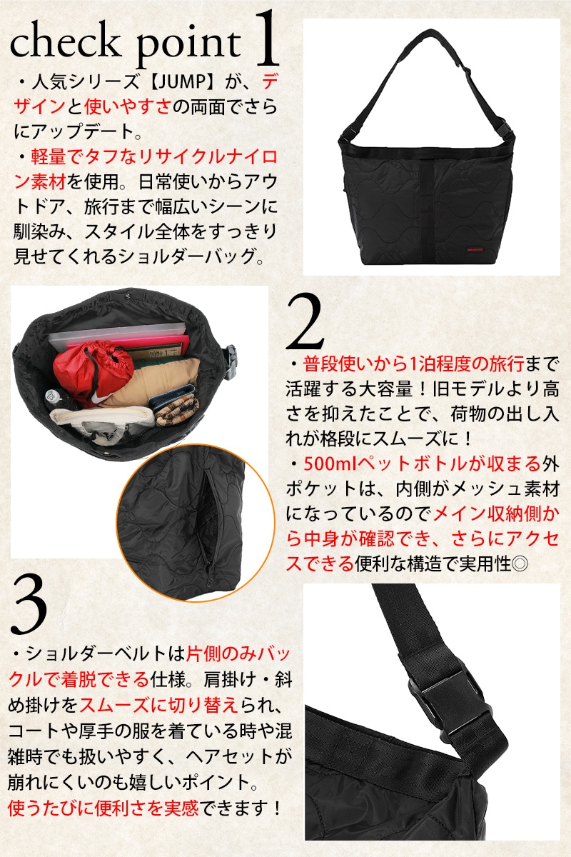 ブリーフィング BRIEFING 斜め掛け 肩掛け 横型 サブバッグ A4対応 大容量 人気 通勤 お出かけ 出張 旅行 ビジネス 仕事 カジュアル 軽い シンプル 無地 黒 緑 JUMP QUILTED JUMPER L