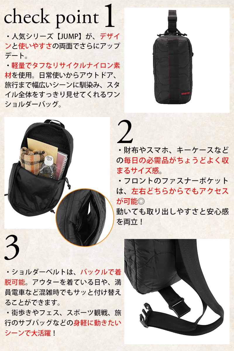 ブリーフィング バッグ ボディバッグ 斜めがけ BRIEFING ジャンプ キルテッドスリングウォーカー B6サイズ BRA253L63 メンズ レディース 送料無料 誕生日プレゼント ギフト ラッピング無料 【正規代理店】 1.ブラック -010