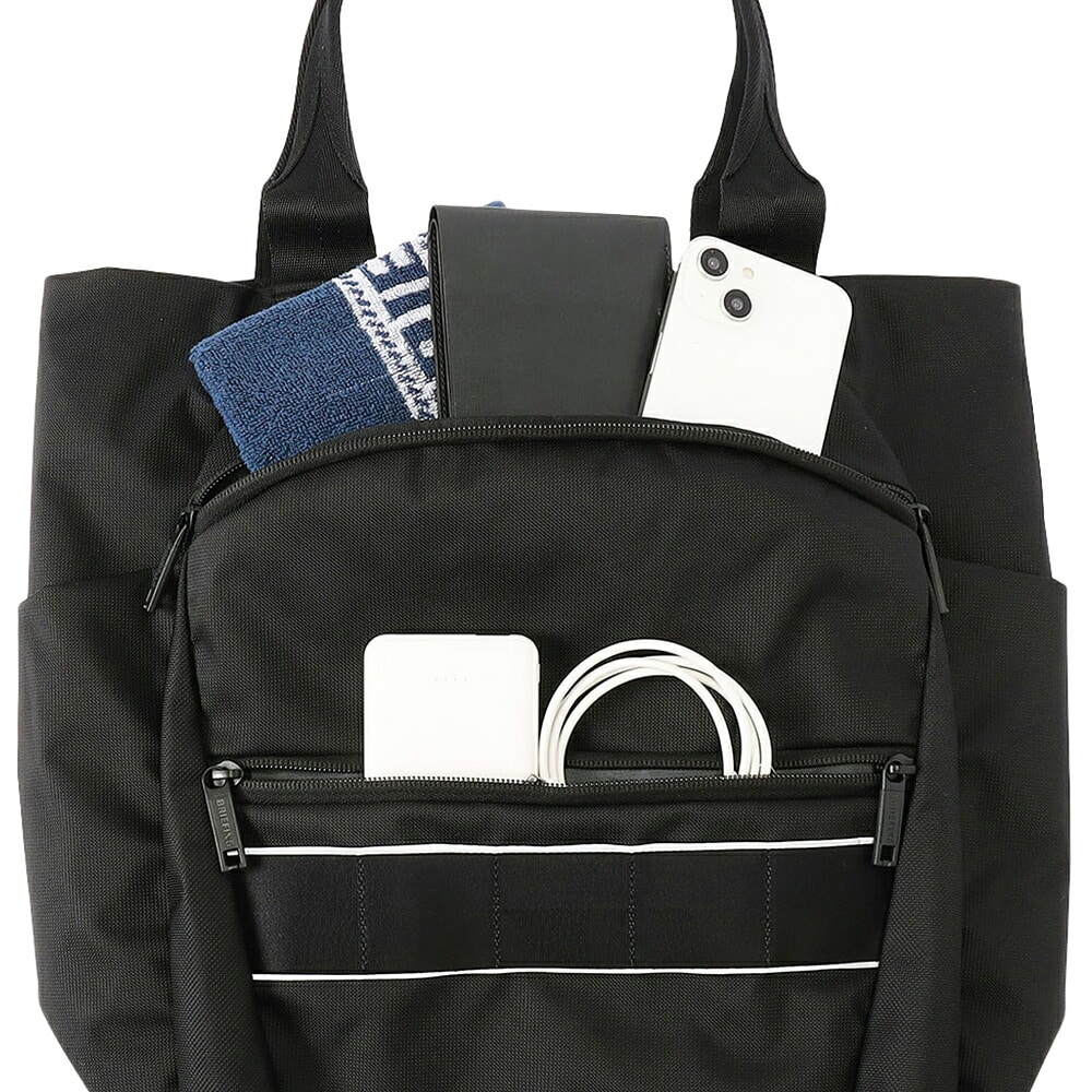 トートスタイルをベースに、必要に応じてリュックへ切り替えられる2WAY設計。