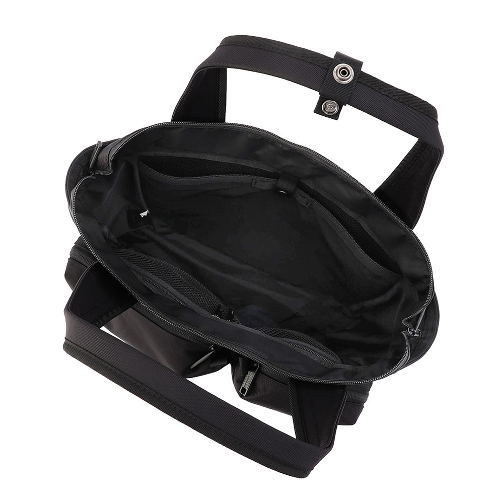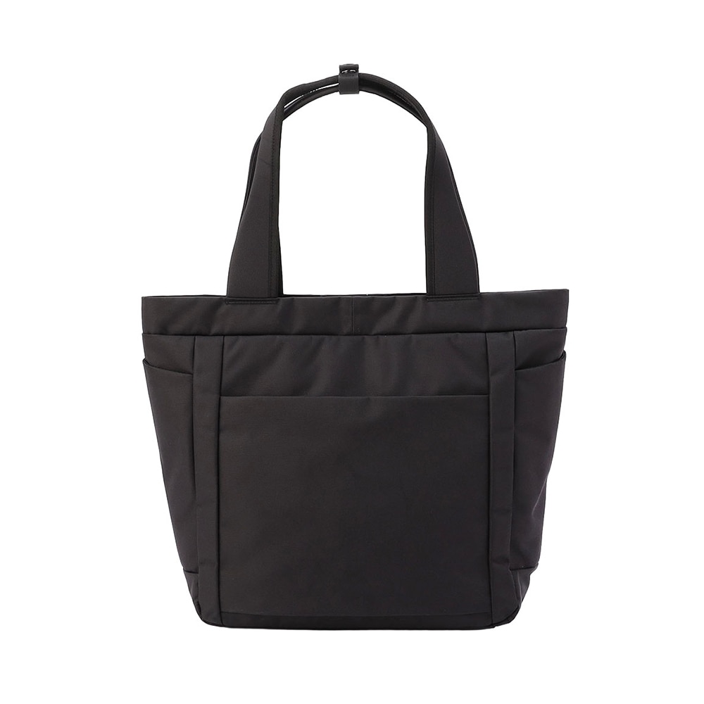 無駄を省いたデザインとオールブラックの色使いがソリッドなトートバッグ。