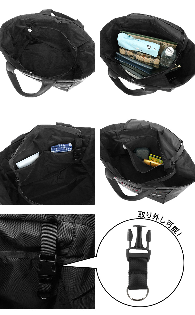 ・開口部にはホックも配置しているので、荷物の量によって留め方を変えることが可能。