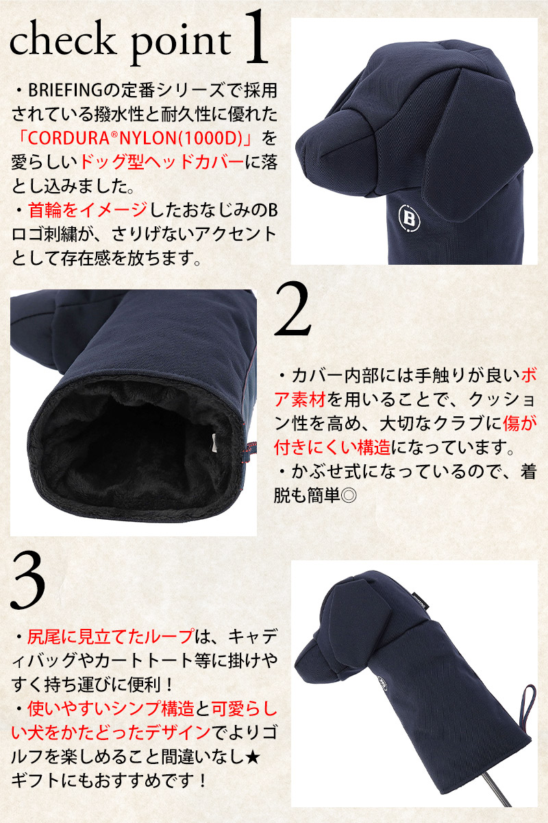 BRIEFING定番シリーズと同じ素材を、人気のドッグ型ヘッドカバーにも使用。