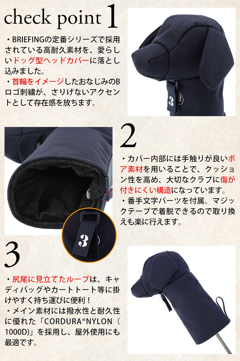 BRIEFING定番シリーズと同じ素材を、人気のドッグ型ヘッドカバーにも使用。