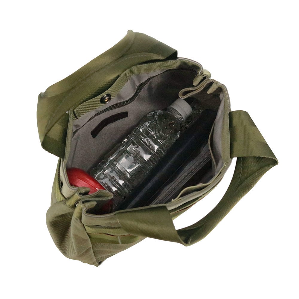 メイン開閉はホックになっているので、ペットボトルなど背の高いアイテムも縦に入れる事ができ、左右から素早く出し入れ可能。