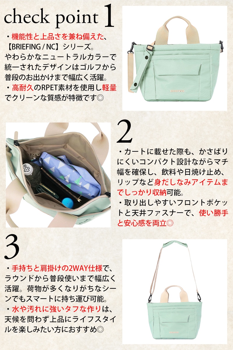 | 備考 | 【メイン開閉】ダブルファスナー 外側/ オープンポケット×1(オープンポケット×2) マグネットポケット×1 内側/ オープンポケット×1 ファスナーポケット×1 付属/ ショルダーストラップ×1 肩パッド×1 キーワード : ゴルフバッグ カートバッグ ラウンドバッグ ゴルフ用品 ゴルフアクセサリー サブバッグ ミニトート 小物収納 軽量 丈夫 メンズゴルフ レディースゴルフ 1万円台 小さめ 財布収納 スマホ収納 ポケット多数 A5対応 トートバッグ ショルダーバッグ 斜め掛け 2WAY メンズ レディース BRIEFING ブリーフィング NCシリーズ スクエアカートトート カジュアル シンプル 高級感 プレゼント ギフト ラッピング ラッピング無料 男性 女性 ビジネス 学生 ブランド ポイント消化 ニューバッグワカマツ ニューバックワカマツ | ||