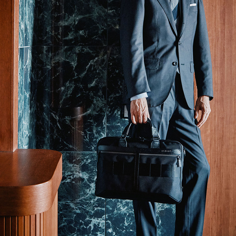 ウォータープルーフ加工を施したレザーと高強度ナイロンを組み合わせたデザインのコレクションから、今までのBRIEFINGとは異なる新たな顔をお届けしていきます。