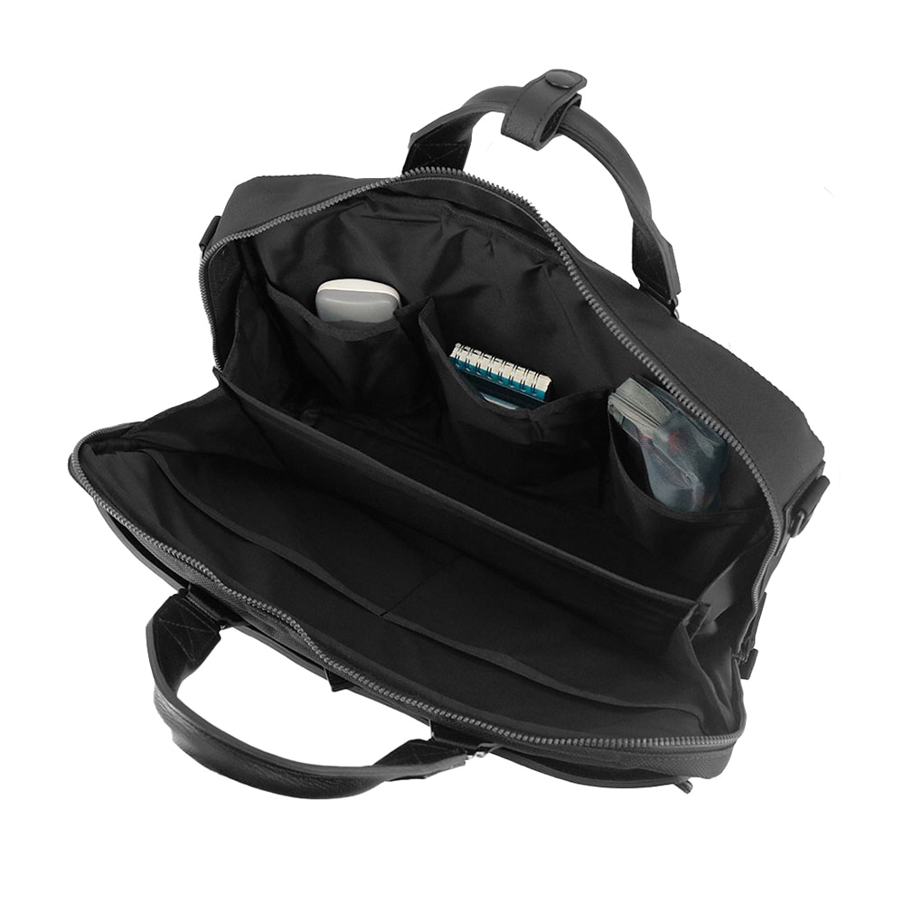 レザー×ナイロンを使用。BRIEFINGの代名詞でもあるレッドラインをあえて使用せず、ワントーンに纏めることで、異素材のコンビネーションが際立つ仕上がりに。