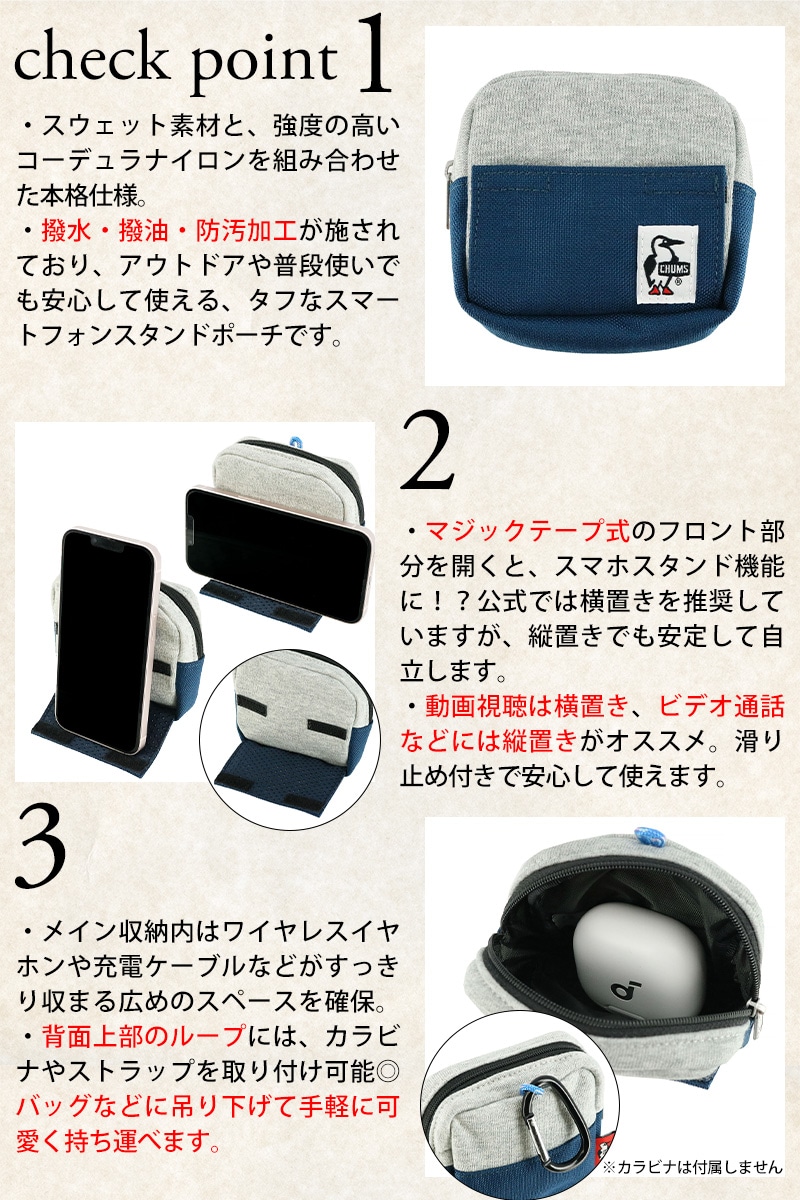 CHUMSから、便利なスマートフォンスタンド機能付きポーチが登場!
