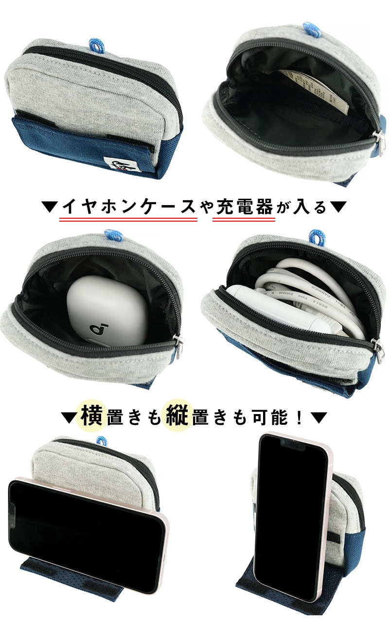 ポーチ 小物入れ スマートフォンスタンドポーチスウェットナイロン