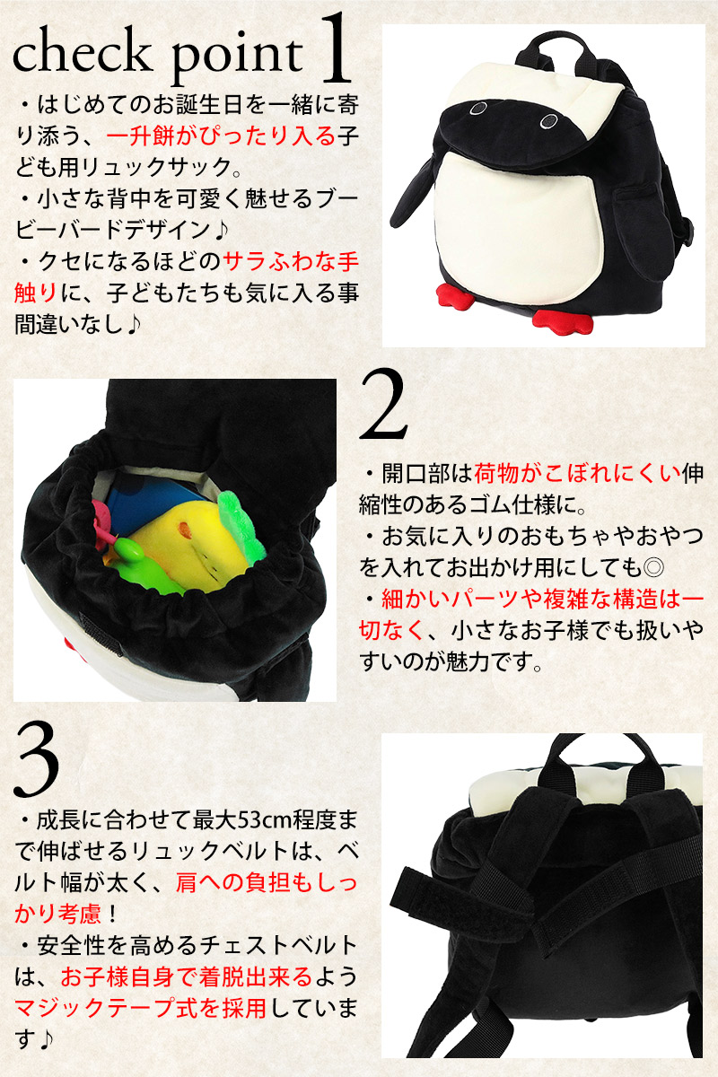 一升餅のお祝いにぴったりサイズ!1歳の誕生日を健やかに祝う、ブービーデザインの可愛いリュック。