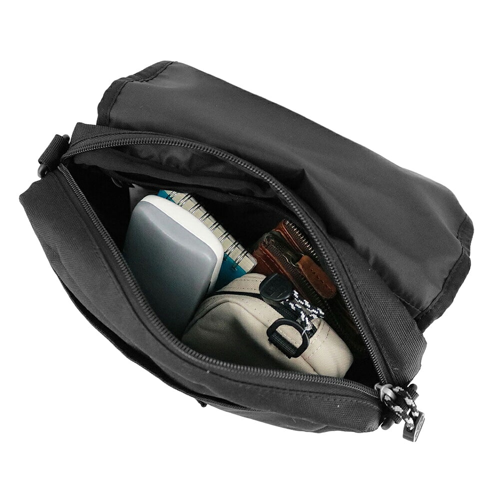 薄手のノート程度であればA5サイズも収まるため、最低限の持ち物+ちょっとした冊子やガイドブックも持ち歩けます。