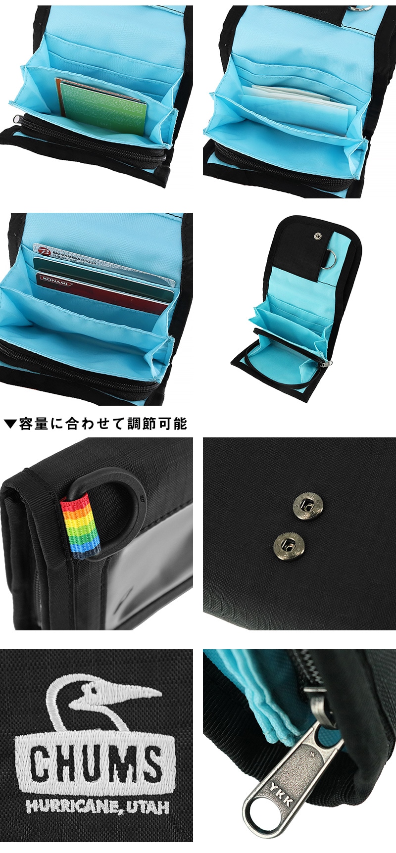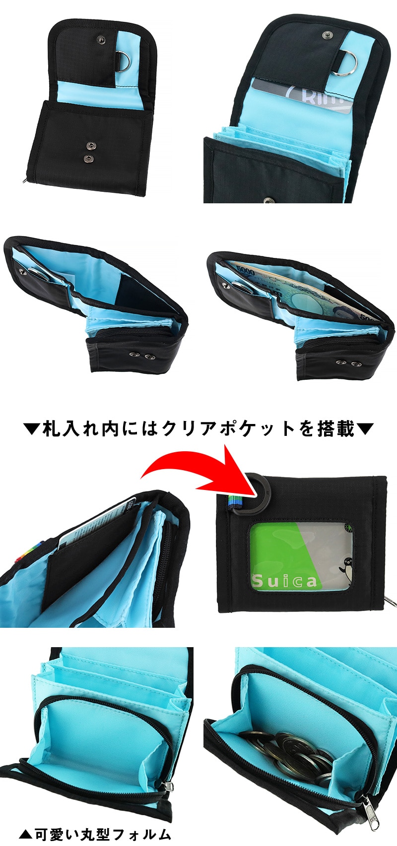 ・クリアポケットやキーリング搭載で、貴重品をまとめて管理可能