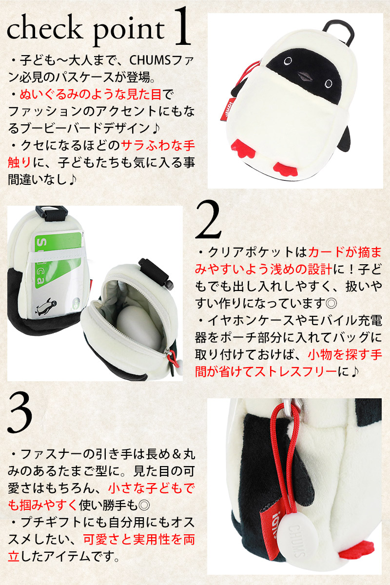 柔らかくふわふわした素材感と遊び心のあるデザインは、チャムス好きの大人も一緒に楽しめます♪