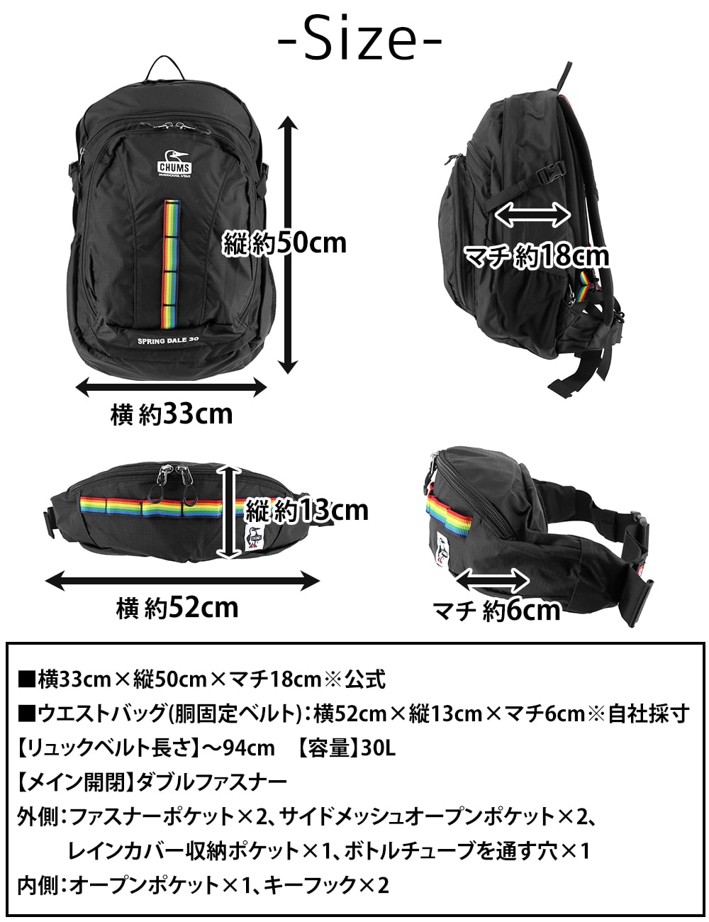 【リュックベルト長さ】~94cm