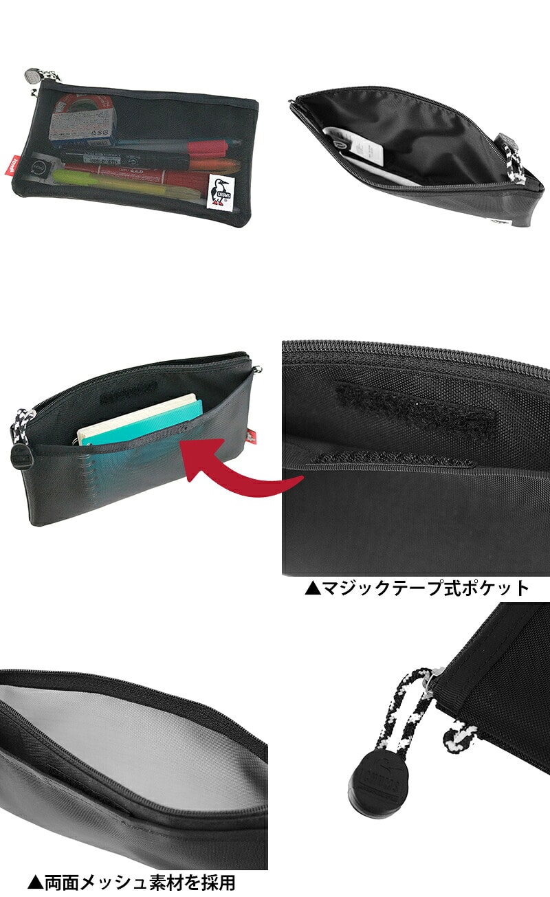チャムス ポーチ 横長 ペンケース 文房具 便利 収納 メッシュ 軽量 CHUMS リサイクルオブロングケース CH60-4064 メンズ レディース キッズ 誕生日プレゼント ギフト ラッピング無料 正規代理店 2.ネイビー -604064n001