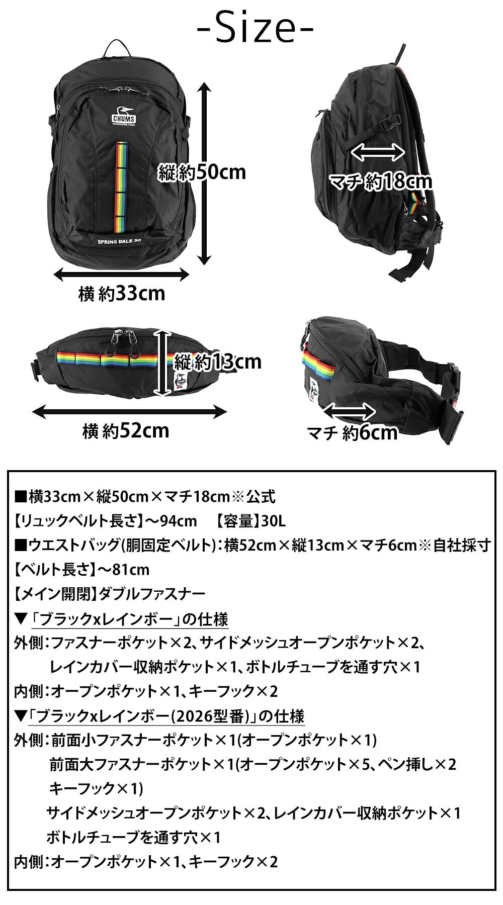 ▼「1.ブラックxレインボー(2026型番)」の仕様