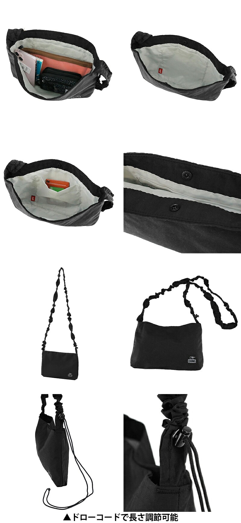 ・ショルダーベルトは根本のドローコードで長さ調節可能