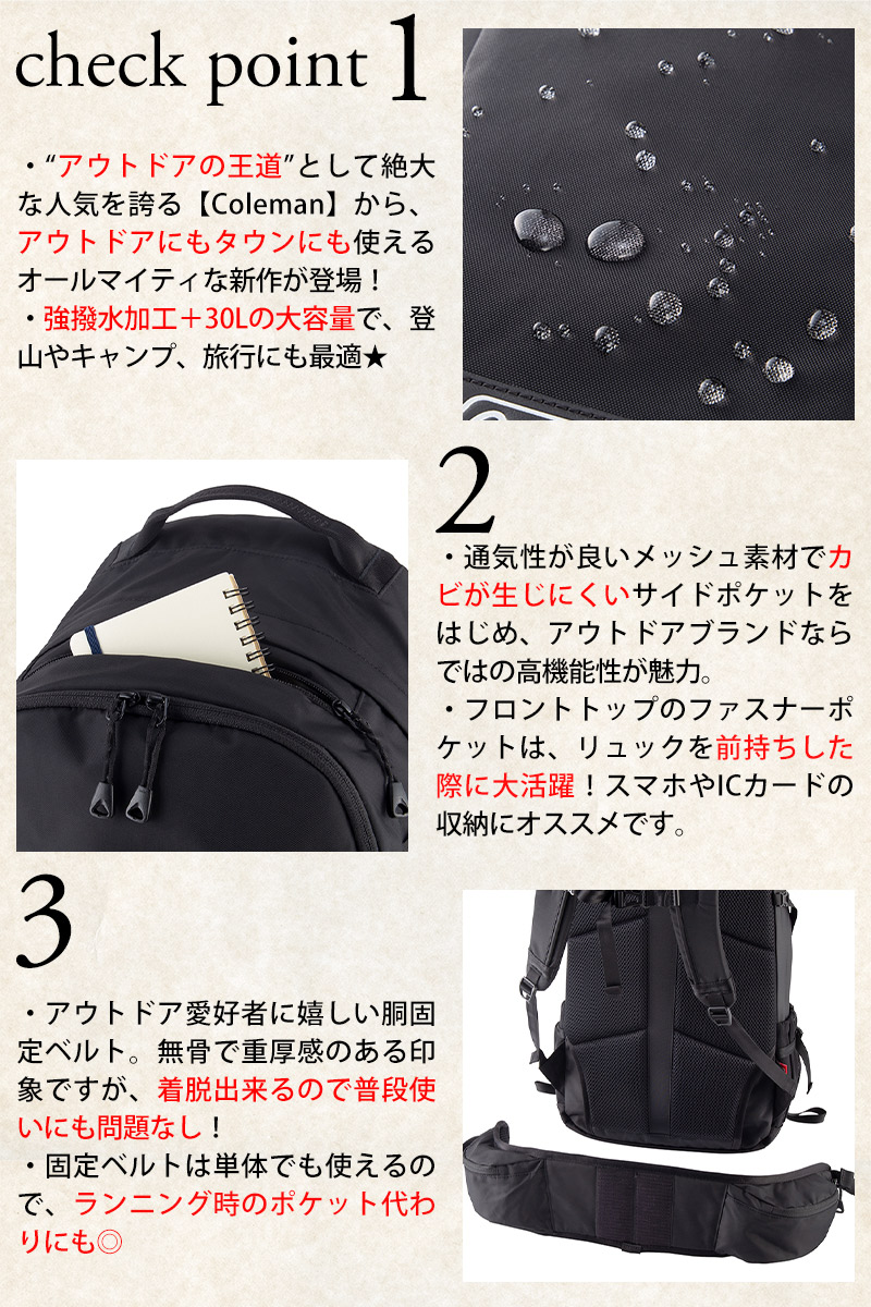アウトドアアクティビティでの使用を想定した機能性と快適性が魅力の高スペックバックパック。