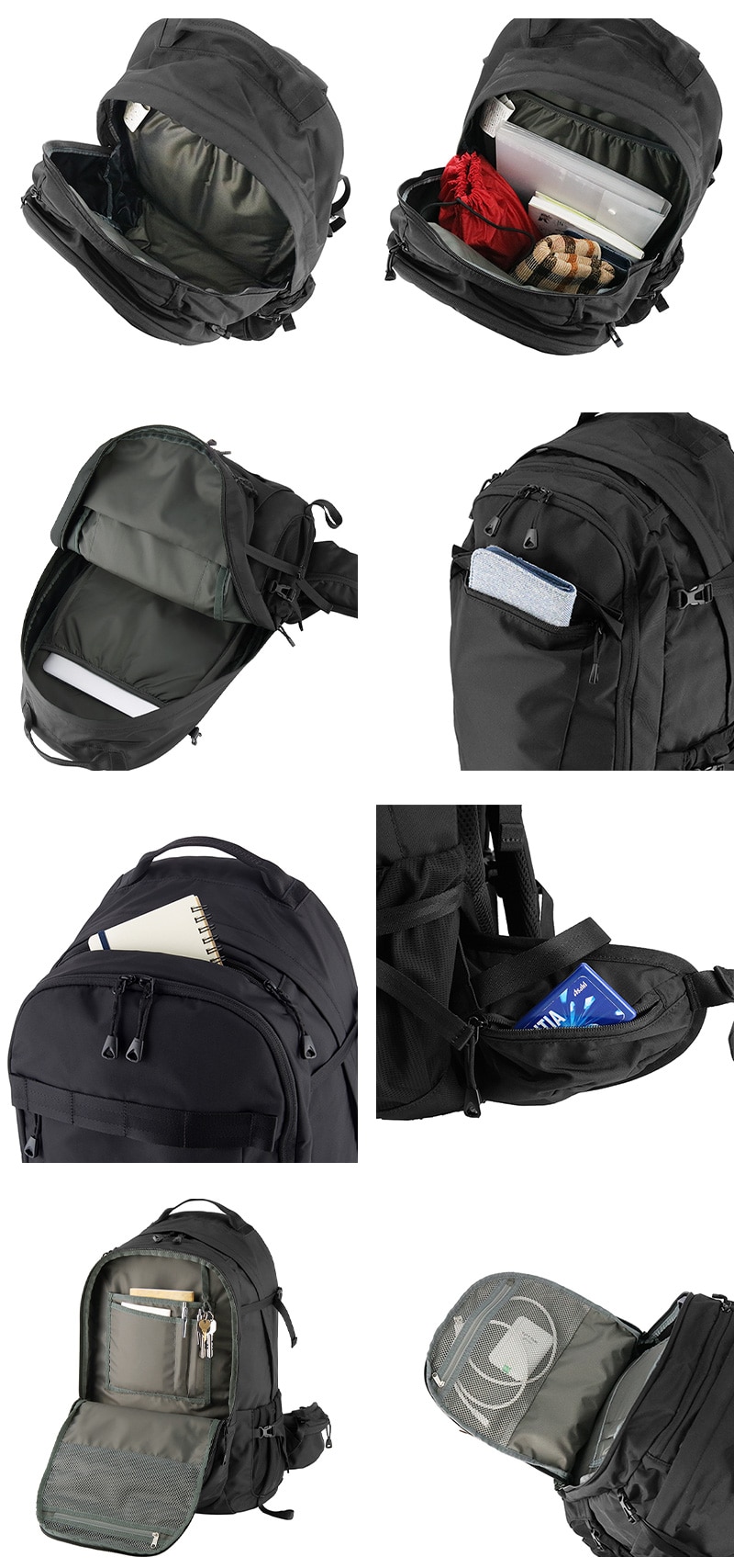 ビジネスツールやアクティビティツールの管理がしやすいよう、ポケットを豊富に配置。