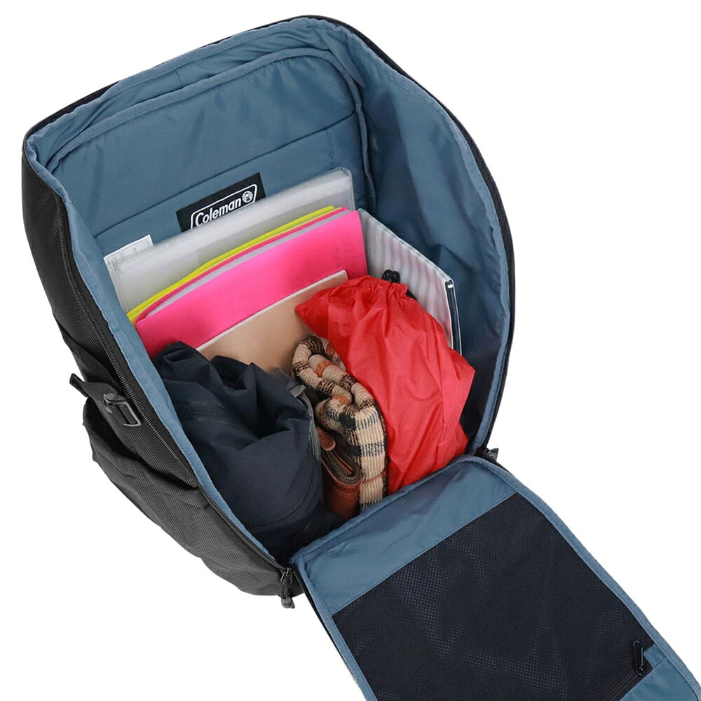 大きく開く設計で中身が見やすく、荷物の出し入れもスムーズな大容量バックパックです。