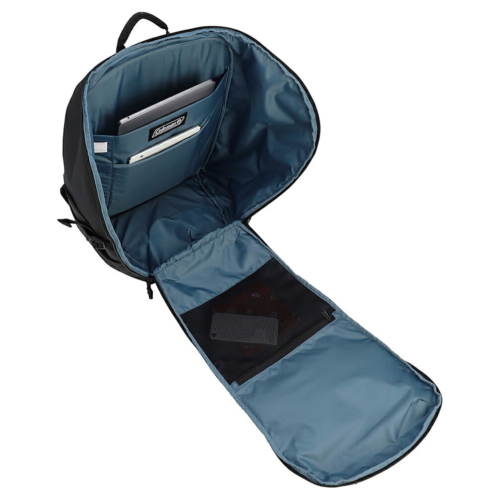 内部にはパッド入りのデバイスポケットとメッシュポケット、キーフックを備え、小物もすっきりまとまります。