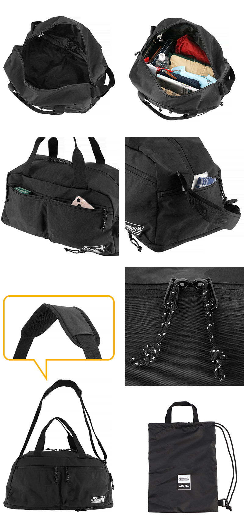 ・不要時にコンパクトにしまえるパッカブル仕様で、専用の収納バッグ付き。収納バッグは単体でも使えるので、旅先でのセカンドバッグにも!