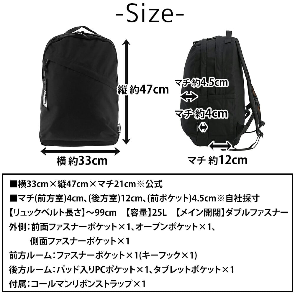 | 備考 | 【メイン開閉】ダブルファスナー 外側/ 前面ファスナーポケット×1 オープンポケット×1 側面ファスナーポケット×1 前方ルーム/ ファスナーポケット×1(キーフック×1) 後方ルーム/ パッド入りPCポケット×1 タブレットポケット×1 付属/ コールマンリボンストラップ×1 ・取り外し可能な可動式チェストベルト搭載 キーワード : リュック バックパック 25L B4対応 通学リュック 通勤リュック 高校生 大学生 通勤 通学 普段使い タウンユース 新生活 メンズ レディース 男女兼用 男性 女性 1万円以下 コスパ PC収納 ノートPC対応 タブレット収納 2室構造 チェストベルト ポケット多い 軽量 ナイロン 撥水 耐久性 シンプル 無地 ストリート ブラック グレー ベージュ プレゼント ギフト ラッピング ラッピング無料 ビジネス 学生 ブランド ポイント消化 ニューバッグワカマツ ニューバックワカマツ | ||